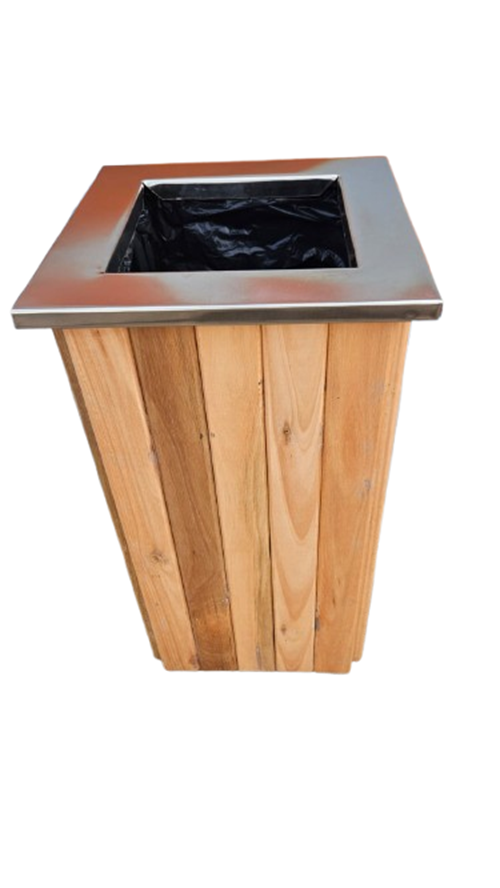 Linda Lixeira Em Madeira Maciça Com Tampa Inox